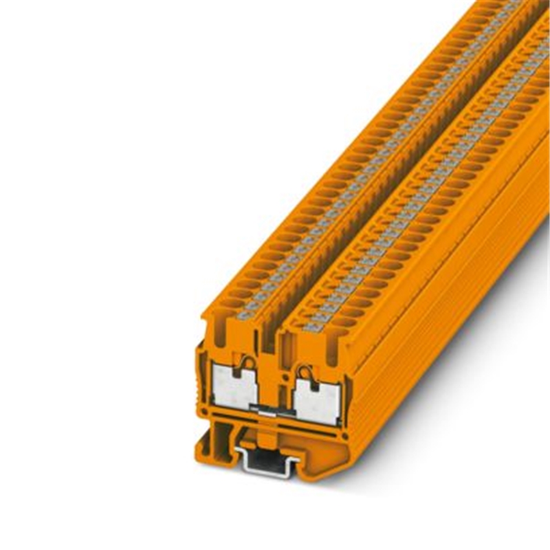 Mini Bloc de jonction de traversée, Push-in, sections : 0,14 mm² - 4 mm², largeur : 5,2 mm, hauteur : 32,1 mm, couleur : orange, type de montage : NS 15