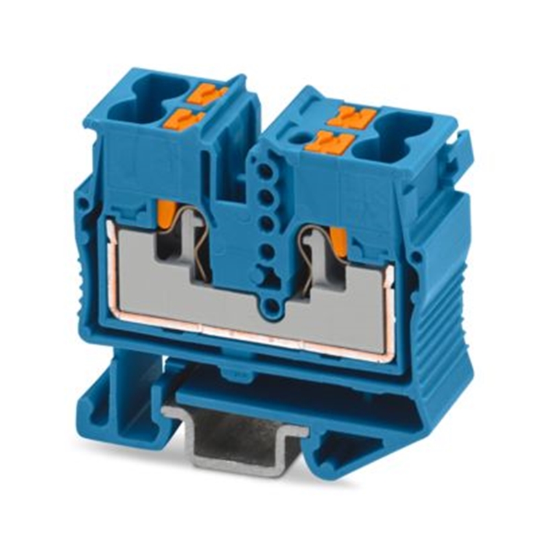 Mini bloc de jonction,Tension nom.: 800 V, Courant nom.: 24 A, nombre de connexons : 4, type de : Push-in, Section nom.: 2.5 mm², Section: 0.14 mm² - 4 mm², type de montage: NS 15, couleur: bleu