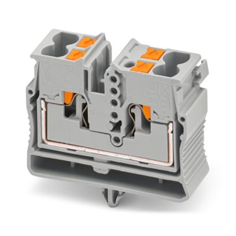 Mini bloc de bornes traversant, 800 V, 24 A, , nombre de connexions : 4, nombre de positions : 1, type de : raccord enfichable : 2,5², section : 0,14² - 4², type de montage : Fixation au moyen de goupilles de fixation, couleur : gris