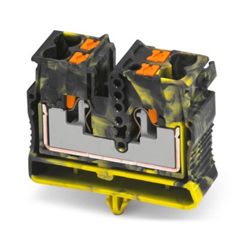 Mini bloc de bornes traversant, 800 V, 24 A, , nombre de connexions : 4, nombre de positions : 1, type de : Connexion enfichable : : 2,5², section : 0,14² - 4², type de montage : Fixation par goupilles de fixation, couleur : noir/jaune