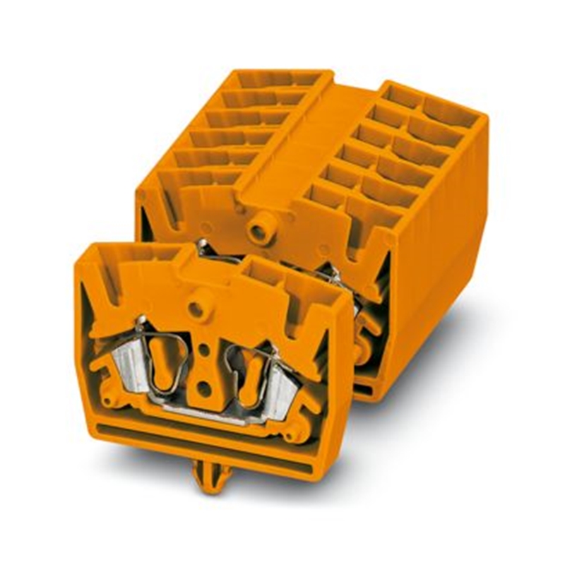 Mini bloc de jonction de traversée, raccordement à ressort, sections : 0,08 mm² - 4 mm², largeur : 5,2 mm, hauteur : 22 mm, coloris : orange, type de montage : Sur plaque de montage