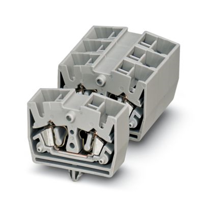 Mini bloc de jonction de traversée, raccordement à ressort, sections : 0,08 mm² - 4 mm², largeur : 10,4 mm, hauteur : 22 mm, coloris : gris, type de montage : Sur plaque de montage