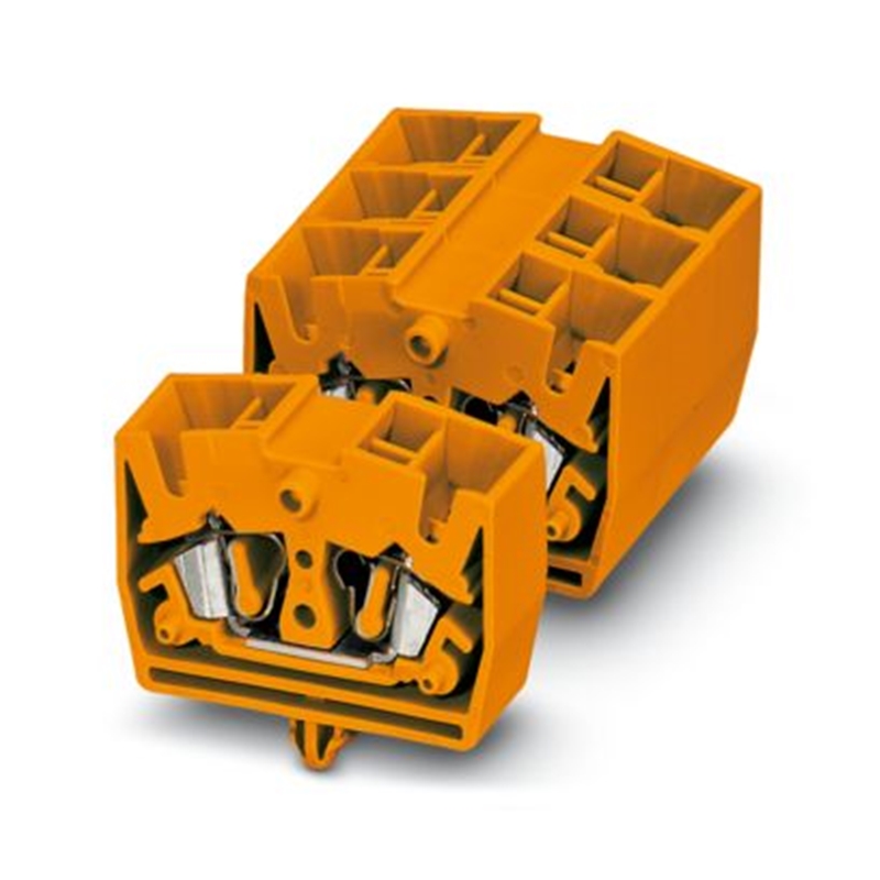 Mini bloc de jonction de traversée, raccordement à ressort, sections : 0,08 mm² - 4 mm², largeur : 10,4 mm, hauteur : 22 mm, coloris : orange, type de montage : Sur plaque de montage