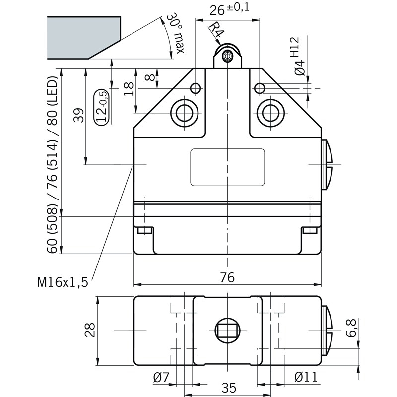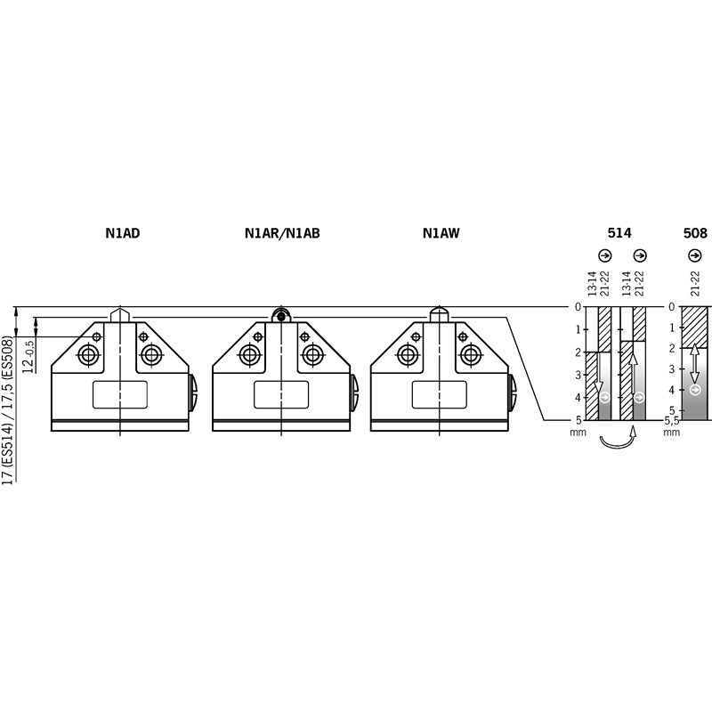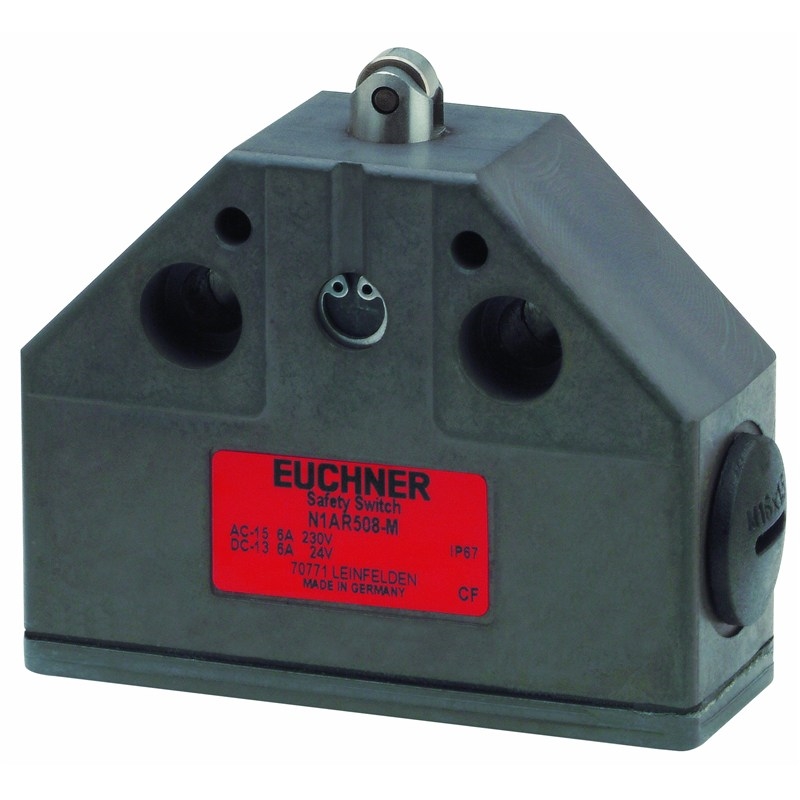 Boîtier monopiste ; Modèle: Boîtier selon la norme DIN 43693; Élément d’actionnement: Poussoir à galet; Nombre d’éléments de commutation: 1; Nombre de contacts à fermeture: 1; Nombre de contacts à ouverture positive: 1 ; Principe de commutation: Élément de contact à action brusque ; Force d’actionnement: min. 30 N; Position de montage: Au choix ; Type de connexion: 2 x M16 x 1,5; Matériau: - Contact: Alliage argent, doré par soufflage, - Boîtier: Alliage léger moulé sous pression, anodisé ; Indice de protection: IP67; Température ambiante: -5 ... +80 °C; Série: N1AR