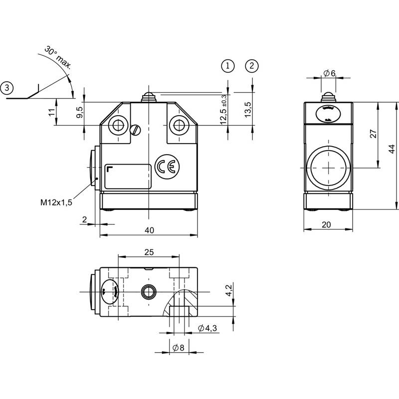 Fin de course monopiste de précision NB01, Poussoir à bille, M12 x 1.5