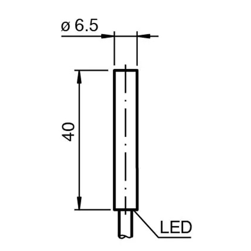 Détecteur de proximité inductif; Format: Cylindrique lisse, D6,5; Version électrique: 3 fils DC; Distance de commutation Sn: 2 mm; Montage: Noyable; Sortie de commutation: PNP; Type de commutation: Contact à ouverture (NF); Fréquence de commutation: 6000 Hz; Interface de communication: -; Raccordement: Câble 2 m, PUR; Tension d'alimentation: 5-30Vdc; Diamètre: Ø 6,5mm; Longueur totale du boîtier: 40 mm; Longueur utile: 40 mm; Matériau du boîtier: Acier inox 1.4305 / AISI 303; Matériau, surface active: LCP; Indice de protection: IP65, IP66, IP67; Température de fonctionnement: -40 ... +85 °C