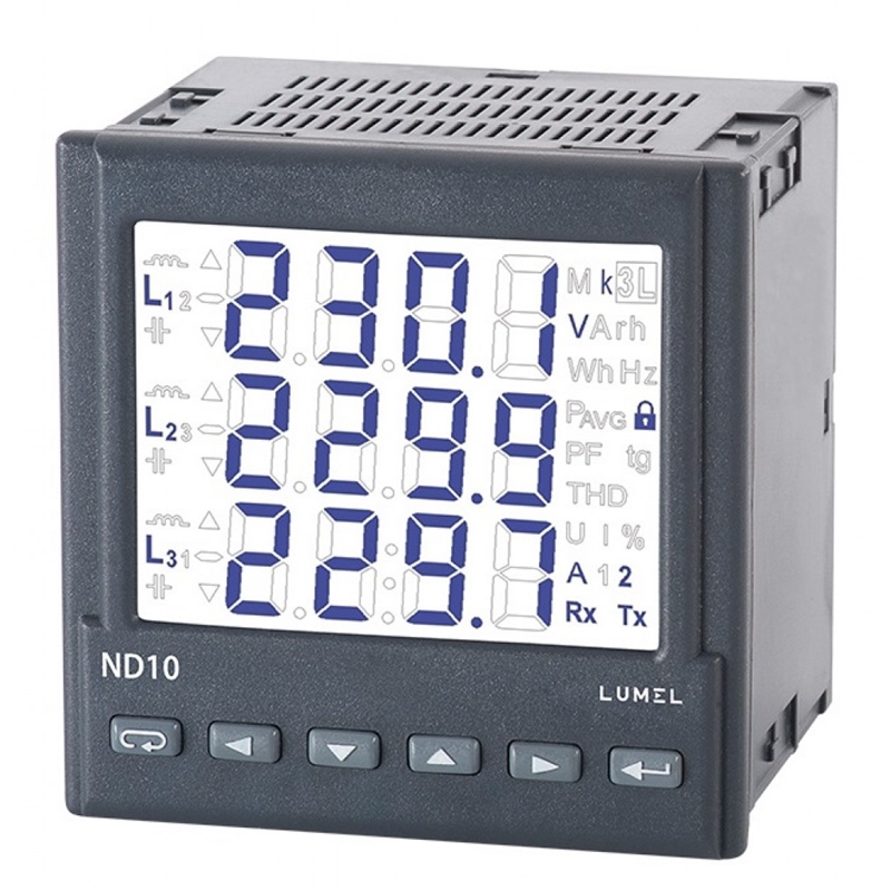 CENTRALE DE MESURE LUMEL ND10, LCD 3.5, 3x5A, 3x230/400V 2xAL, 1xDO, RS485, 85-265VAC