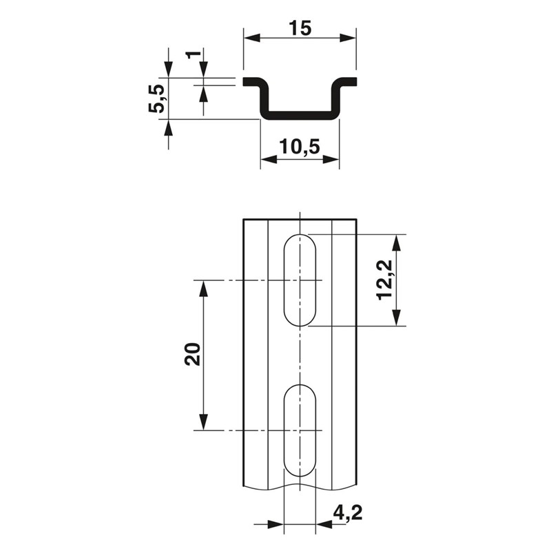 Profilé percé, Conditionnement par 10 unités (20 m), selon EN 60715, matériau: Acier, galvanisé, traité par passivation couche épaisse, Profil standard, coloris: argenté