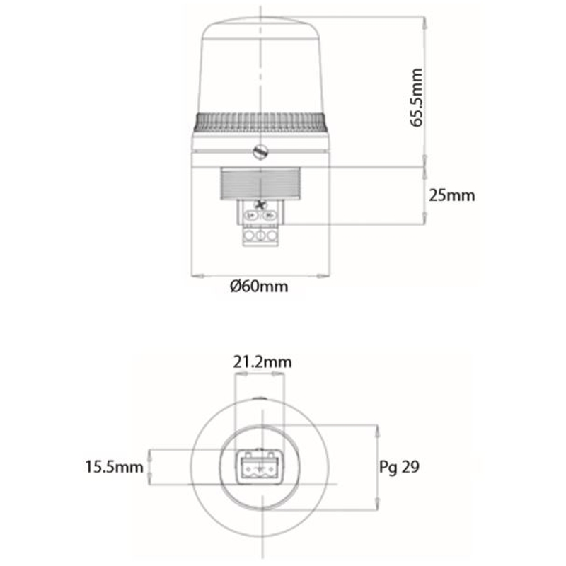 Feu LED encastrable 24Vcc Bleu 65.5xø60mm IP65