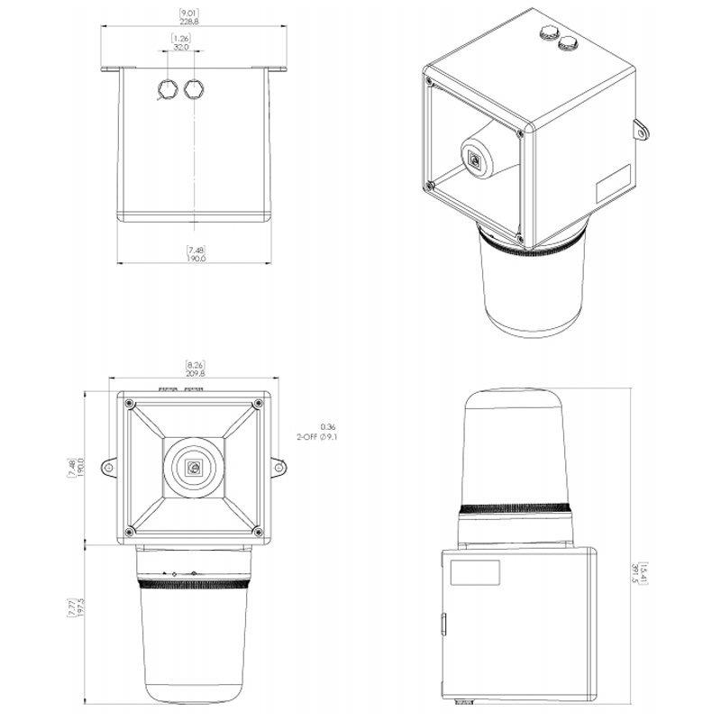 Combiné LED / 124 dB OPTASON® 103.5-126.5 Vca-Transparent-64 sons
