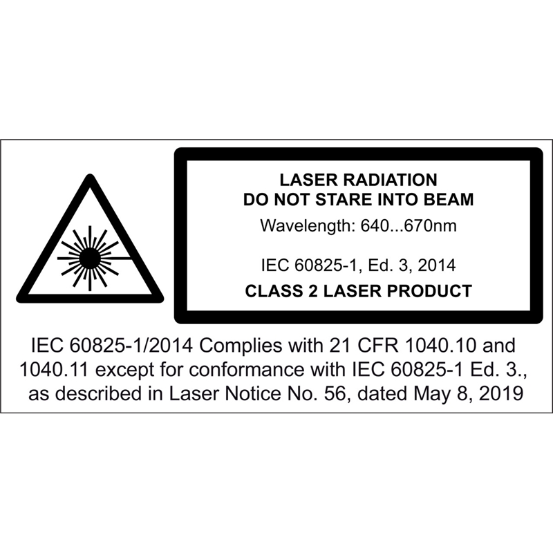 • Source d'émission: Laser, Lumière rouge, Classe 2