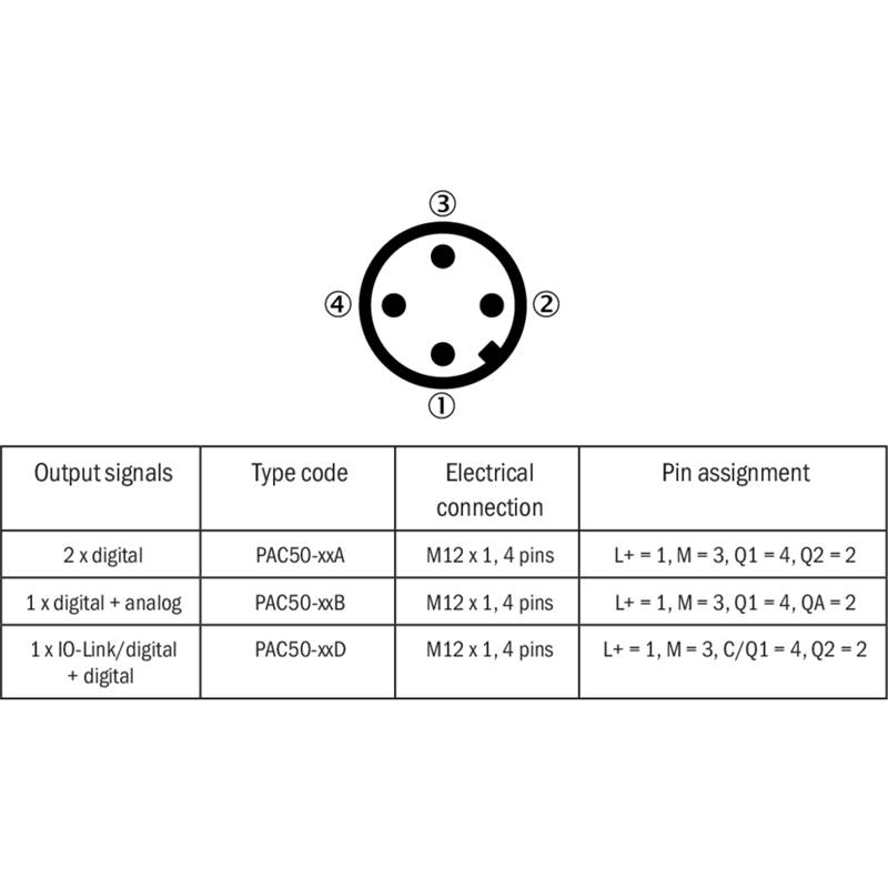 La particularité du PAC50 : jusqu'à deux sorties de commutation numériques et une sortie analogique en option dans un seul appareil. Les signaux de sortie s'adaptent à la commande de manière flexible. Avec l'IO-Link en option, la commande raccordée peut transmettre les paramètres de l'appareil rapidement et sans erreur en cas de changement de format et de remplacement de capteur, ce qui raccourcit considérablement les temps d'arrêt. Protégé par un boîtier étanche avec indice de protection IP 65 et IP 67, le PAC50 convient parfaitement aux environnements industriels.