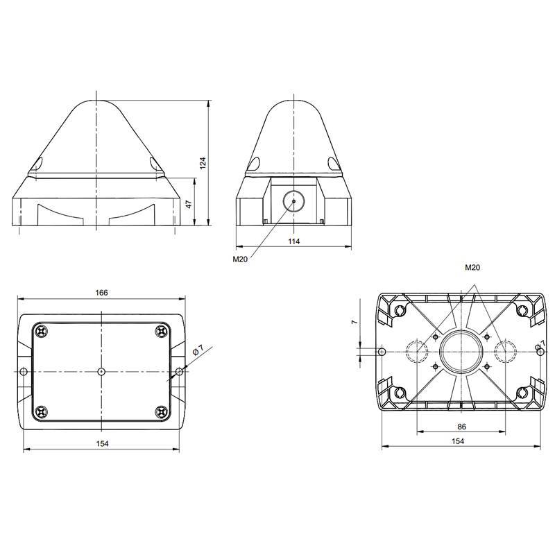 Lampe à éclairs pyramidale; Fonctionnement: Flash; Type d'éclairage: Xénon; Couleur d'optique: Vert; Tension: 10-60 VDC; Consommation nominale: 110 mA; Puissance lumineuse en candelas: 44 cd; Puissance lumineuse en joules: 5 Joules; Entrée de câble: 4 x M20; Dimensions: 166 mm x 114 mm x 124 mm; Matériau du boîtier: ABS; Matériau de l'optique: Polycarbonate; Synchronisation: Oui (en montage parallèle); Indice de protection: IP66; Résistance impactes IK: IK 08; Température d'utilisation: -40 ... +55°C; Série: PBV22005