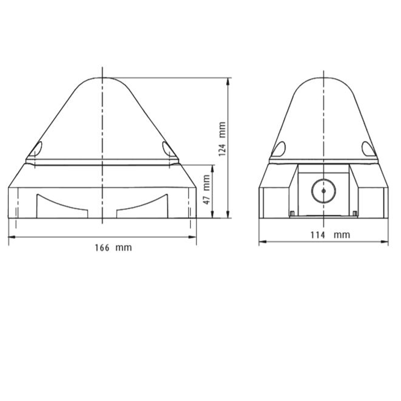 Lampe à éclairs pyramidale; Indice de protection: IP66; Dimensions (L x l x h): 154 x 114 x 124 mm; Tension: 10-60 VDC; Consommation: 540 mA (24 VDC); Entrée de câble: 2 empreintes M20 sur côtés et 2 empreintes M20 au dos; Température d'utilisation: De -40 à +55°C; Puissance lumineuse en candelas: 118 cd; Puissance lumineuse en Joules: 10 Joules; Couleur d'optique: Orange; Synchronisation: Synchronisation automatique pour les montages en multi flash; Résistance impactes IK: IK 08