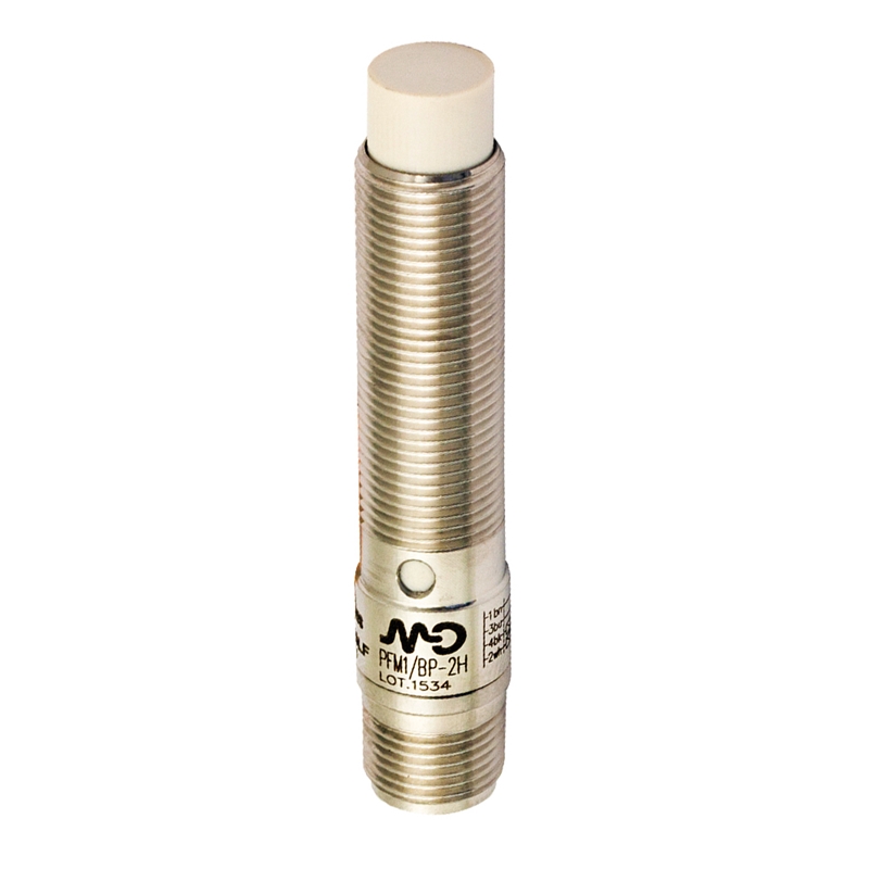 Capteur de proximité inductif; Format: Cylindrique fileté, M12 x 1; Version électrique: 3 fils DC; Distance de détection: Sn= 8.00 mm; Montage: Nno noyé; Sortie de commutation: NPN; Type de commutation: Antivalente (NO+NF); Fréquence de commutation: 2 kHz; Raccordement: Connecteur mâle M12 4 pôles; Tension d'alimentation: 10-30Vdc; Diamètre: Ø 18 mm; Longueur totale du boîtier: 64,6 mm; Longueur de filetage utile: 32,5 mm; Matériau du boîtier: Acier inoxydable AISI316L; Face sensible matériau: PPS; Classe de protection: IP68, IP69K; Température ambiante: -40°C…+80°C (jusqu'à 100°C pour une courte exposition pendant le processus de nettoyage); Homologations: CE, cULus, ECOLAB, DIVERSY; Accessoires fournis: 2 écrous M12x1; Série: PFM