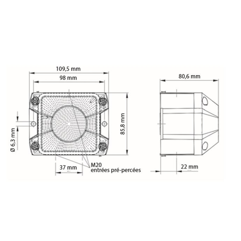 Feu flash 5J pyramidal et compact 12Vcc 600mA Rouge IP66