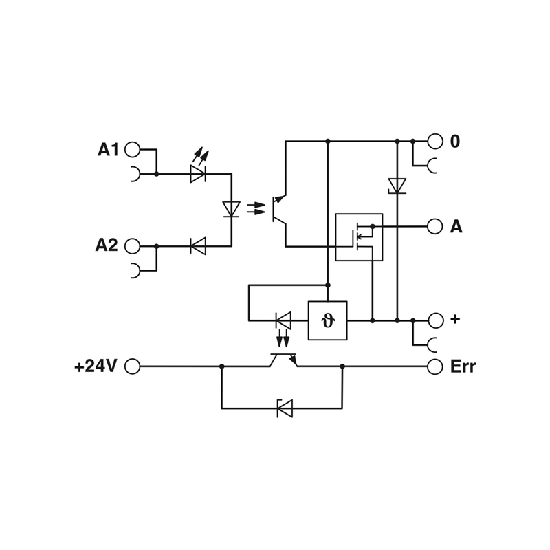 PLC-INTERFACE avec contact de retour, comprenant le bloc de jonction de base avec raccordement vissé et relais à semi-conducteurs miniature enfichable, pour le montage sur rail DIN NS 35/7,5, 1 contact NO, entrée : 24 V DC, sortie : 3 ... 33 V DC/10 A