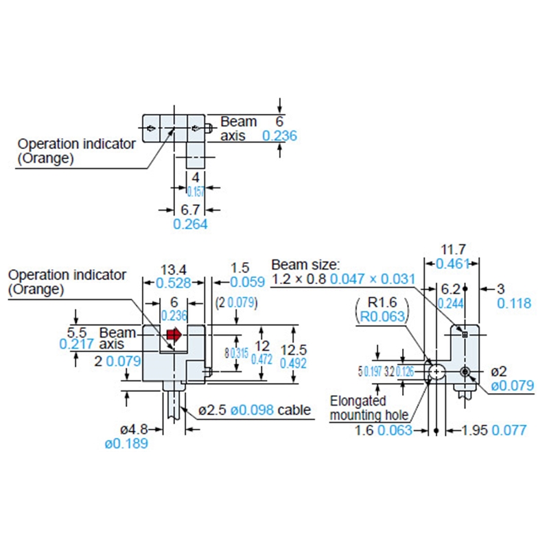 Fourche optique en U, type, R-shape, 6 mm, NPN, Led infrarouge, claire/sombre, 5-24Vdc, câble 1m, flexible