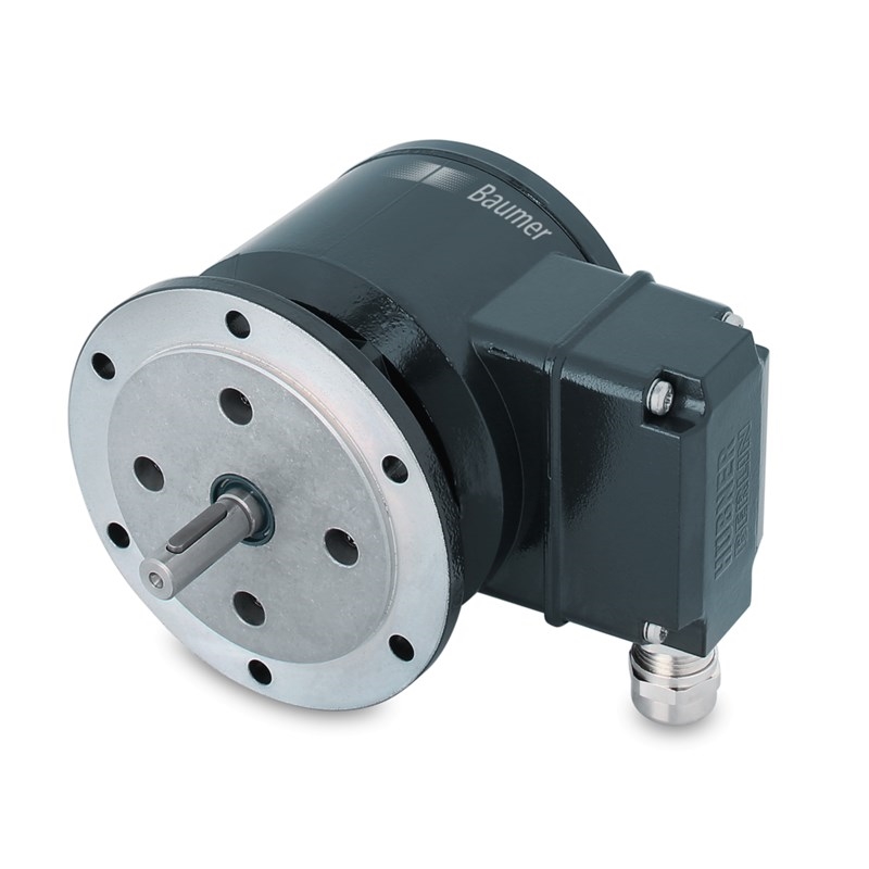 Codeur incrémental, Ø115 mm à axe sortant, 2 voies A et B + top zéro, 1 tour = 2048 impulsions, sorties HTL+compléments, alimentation 9-30 VDC, bride Euro B10, axe Ø11 mm, boîte à bornes radiale, sans câble