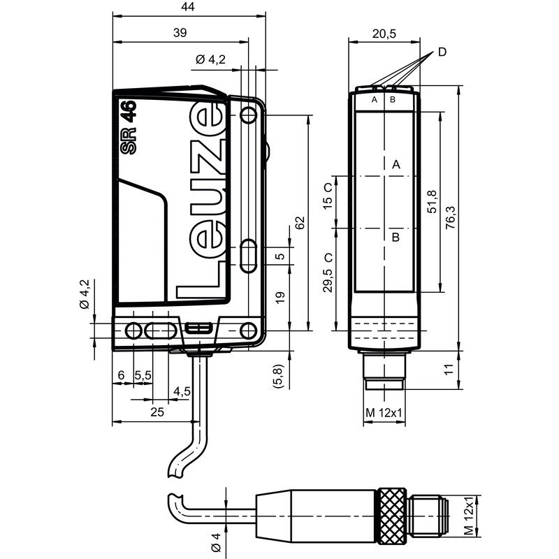 Capteur photoélectrique; Format: Parallélépipédique; Principe du capteur: Barrière réflex; Principe de détection: Reflex sur réflecteur; Distance de commutation: 0,1 ... 16 m (TK(S) 100x100); Distance de commutation max.: 0,1 ... 20 m (TK(S) 100x100); Réglage: Bouton d'apprentissage; Source d'émission: LED, Lumière rouge, Non polarisée; Sortie de commutation: PNP; Mode de commutation: Commutation claire/sombre; Temps de réponse: 1 ms; Fréquence de commutation: 500 Hz; Raccordement: Connecteur mâle M12, 4 pôles, codé-A; Tension d'alimentation: 10-30Vdc; Dimensions (l x H x P): 20,5 mm x 76,3 mm x 44 mm; Matériau du boîtier: Plastique, PC-PBT; Matériau de l'optique: Plastique / PMMA; Indice de protection: IP67, IP69K; Température de fonctionnement: -40 ... 60 °C; Série: 46C