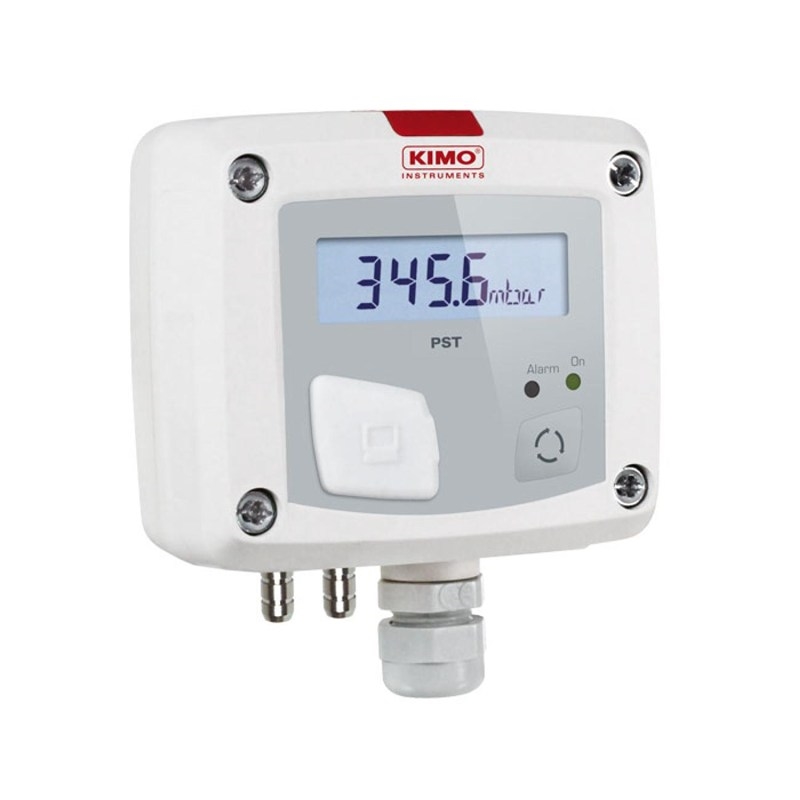 Manostat type PST-15. Boîtier ABS V0 IP65 avec système de montage simplifié et afficheur 10 digits. Gamme -2000 à 2000 mbar, sortie 1 relais inverseur 3A / 230 Vac, réglage du relais par bouton poussoir et alimentation 24 Vdc / Vac. En option : logiciel de configuration LCC-S.