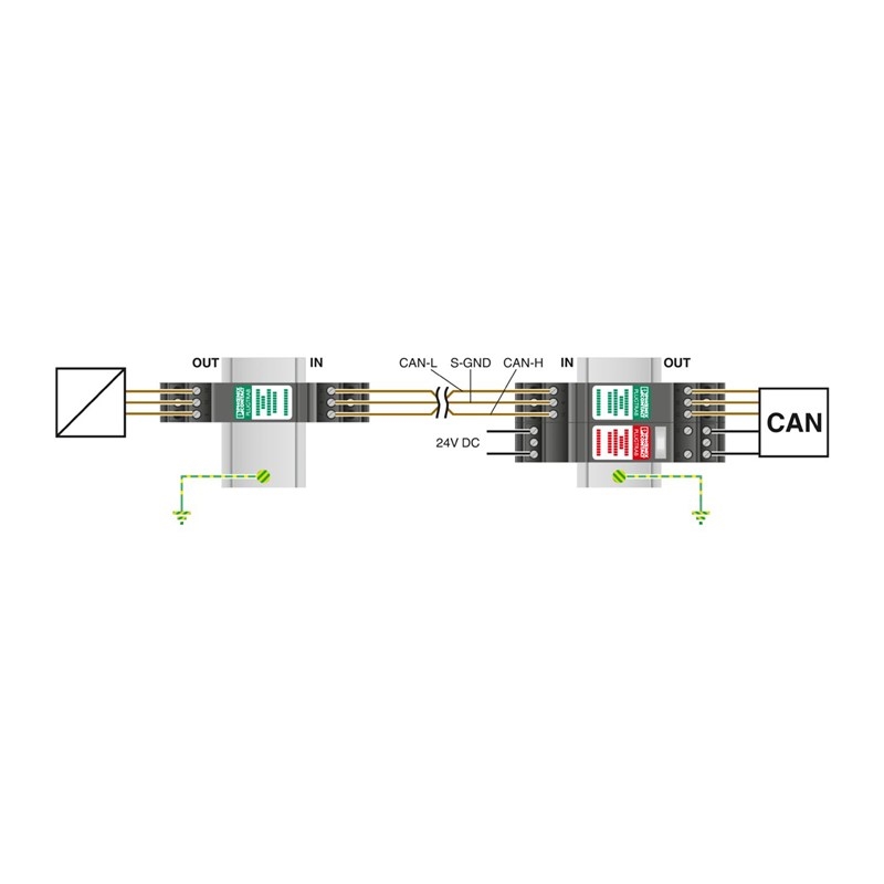Embase pour fiche de protection PT avec circuit de protection pour un circuit de signal bifilaire sans potentiel de terre. Montage sur NS 35/7,5 et NS 35/15, largeur de boîtier : 17,5 mm.