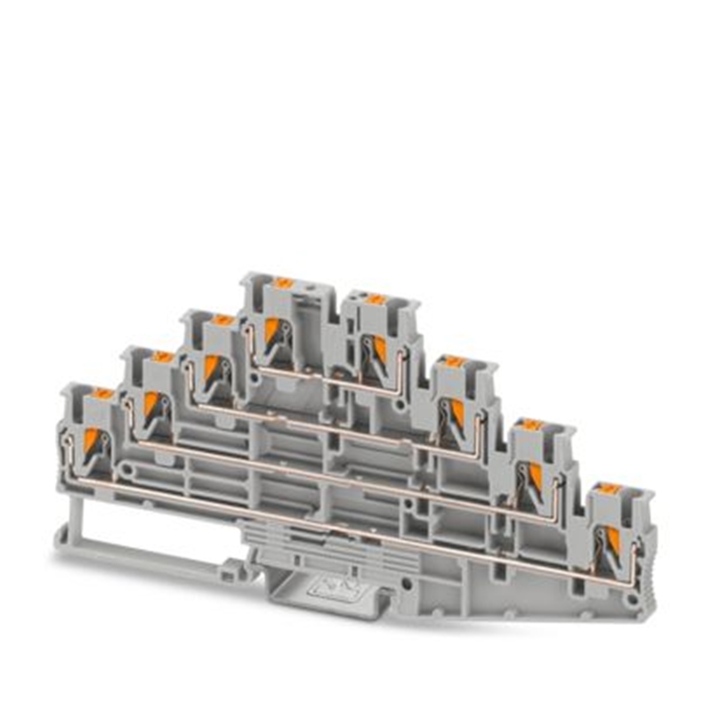 Bloc de jonction à plusieurs étages, tension nom.: 500 V, intensité nom.: 18 A, Push-in, Section max. avec embout: 2,5 mm², section : 0,14 mm² - 4 mm², type de montage: NS 35/7,5, NS 35/15, couleur: gris