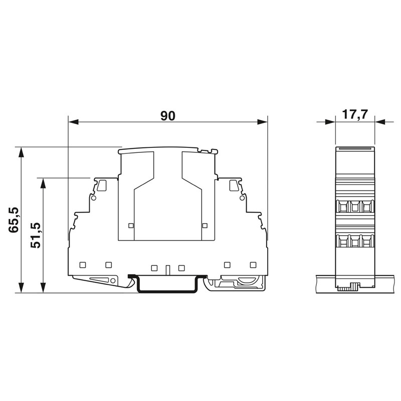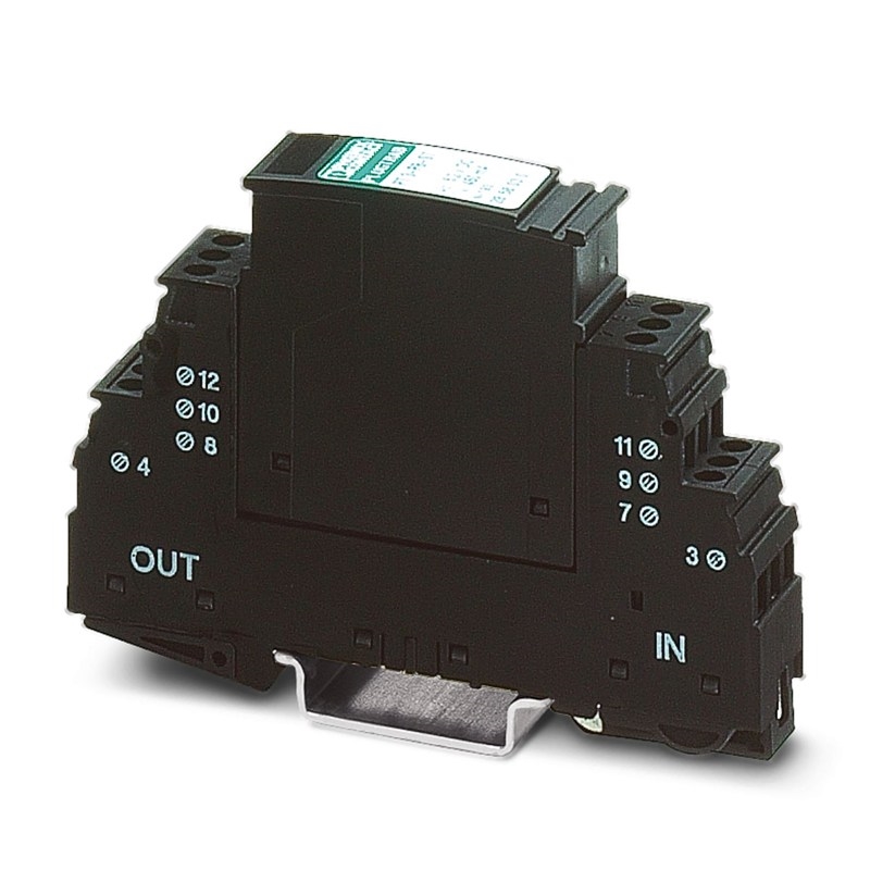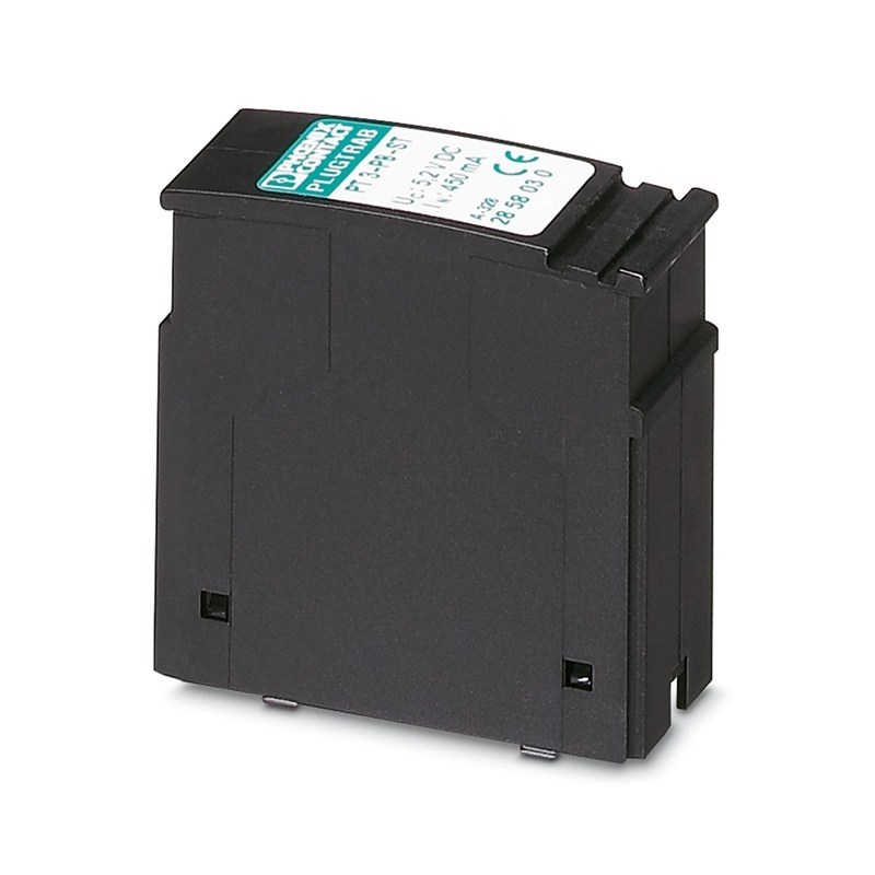 Fiche de protection antisurtension pour embase, protection en mode différentiel et protection fine pour deux fils de signaux sans potentiel de terre dans le domaine de l'informatique, protection en mode commun avec la terre.