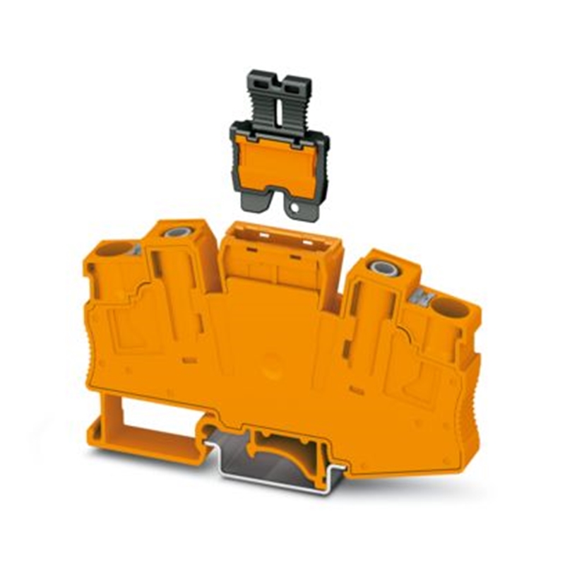 Borne à fonction, tension nom.: 1000 V, intensité nom.: 32 A, type de : Push-in, section : 0,5 mm² - 10 mm², AWG: 20 - 8, longueur: 91 mm, largeur: 10,2 mm, couleur: orange, montage: NS 35/7,5, NS 35/15, NS 32