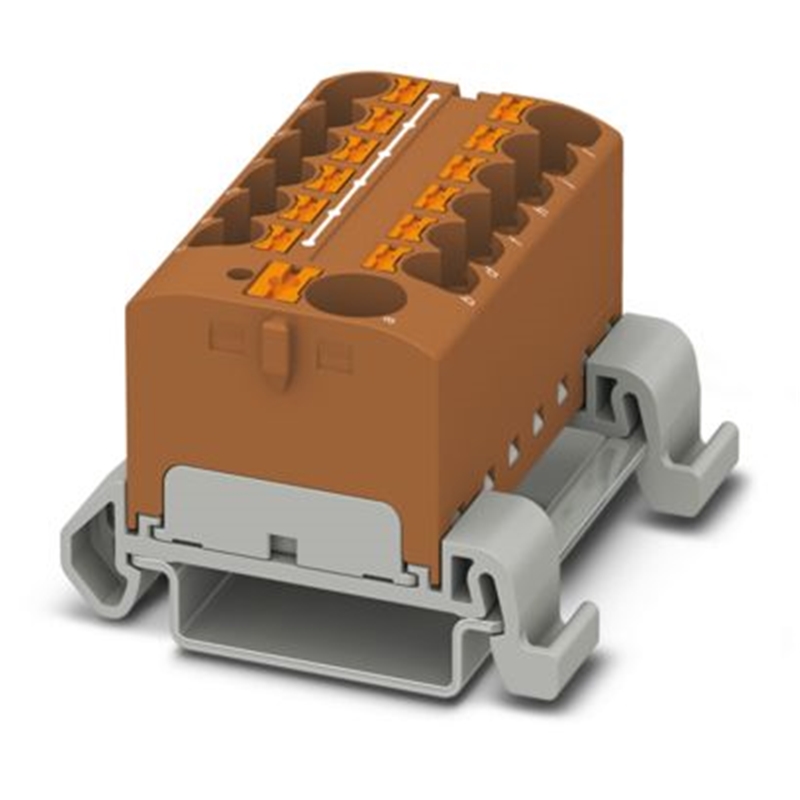 Bloc distributeur, pour montage longitudinal, Push-in, 450 V, 32 A, nombre de connexions: 13, section : 0,2 mm² - 6 mm², AWG: 24 - 10, largeur: 46,3 mm, hauteur: 21,7 mm, couleur: brun