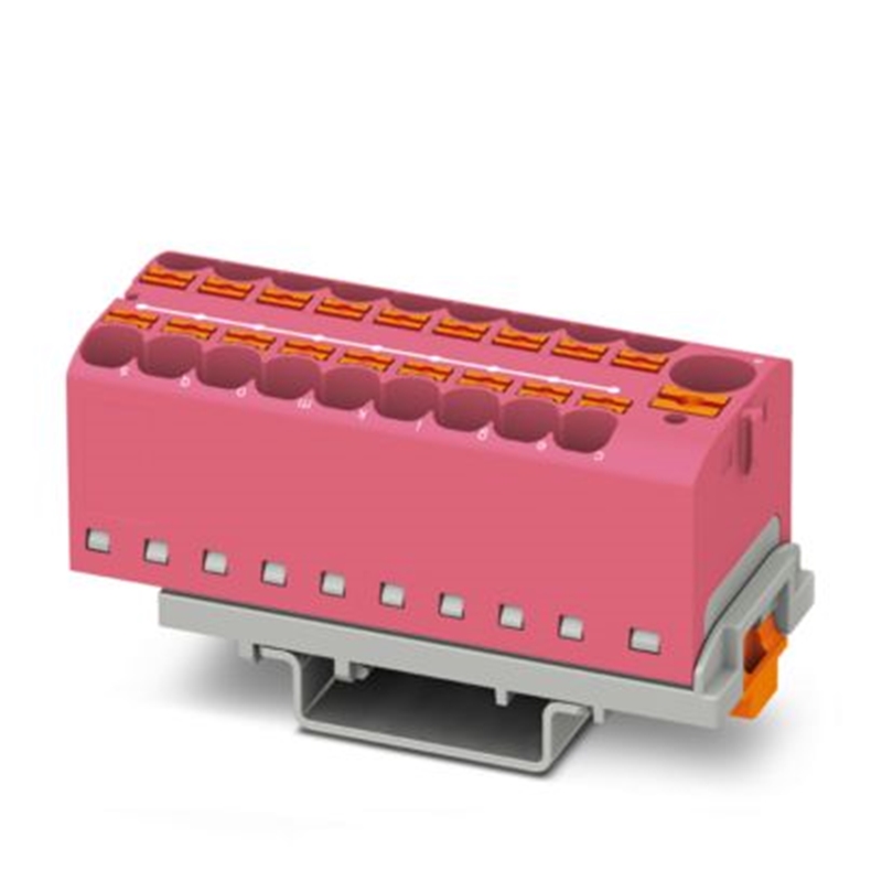 Bloc distributeur, Montage transversal sur rail, raccordement Push-in, 450 V, 32 A, nombre de connexions : 19, section : 0,2 mm² - 6 mm², AWG: 24 - 10, largeur : 46,3 mm, hauteur : 21,7 mm, coloris : rose