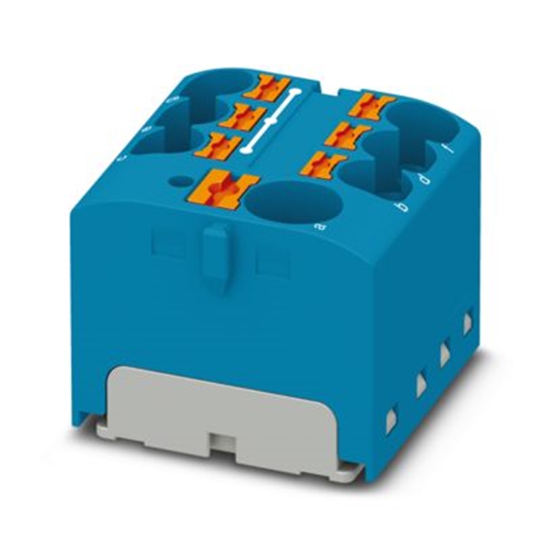 Bloc distributeur, Module adhésif, Push-in, 450 V, 32 A, nombre de connexions: 7, section : 0,2 mm² - 6 mm², AWG: 24 - 10, largeur: 46,3 mm, hauteur: 21,7 mm, couleur: bleu