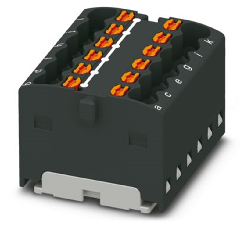 Bloc distributeur, Push-in, nb. de connexions : 12, sections : 0,14 mm² - 1,5 mm², largeur : 25,2 mm, hauteur : 17,6 mm, couleur : noir, type de montage : montage direct avec bride