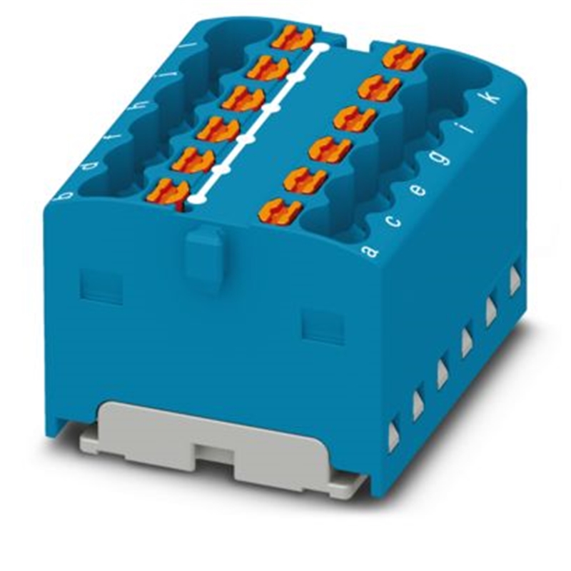 Bloc distributeur, Push-in, nb. de connexions : 12, sections : 0,14 mm² - 1,5 mm², largeur : 27,3 mm, hauteur : 17,6 mm, couleur : bleu, type de montage : adhésif
