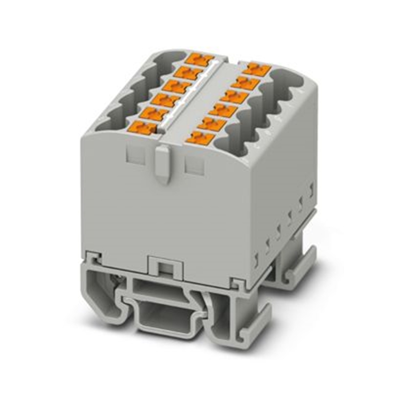 Bloc distributeur, pour montage longitudinal, Push-in, nombre de connexions : 12, sections : 0,14 mm² - 4 mm², largeur : 31,2 mm, hauteur : 30 mm, couleur : gris, type de montage : NS 15