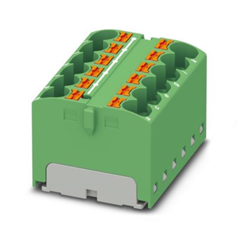 Bloc distributeur, 630 V,32 A, Push-in, nb. de connexions: 12, 0,2 mm² - 6 mm², largeur: 36,9 mm, hauteur: 21,7 mm, couleur: vert, montage: encliquetage sur l'adaptateur de profilé, Plaque d'adaptation