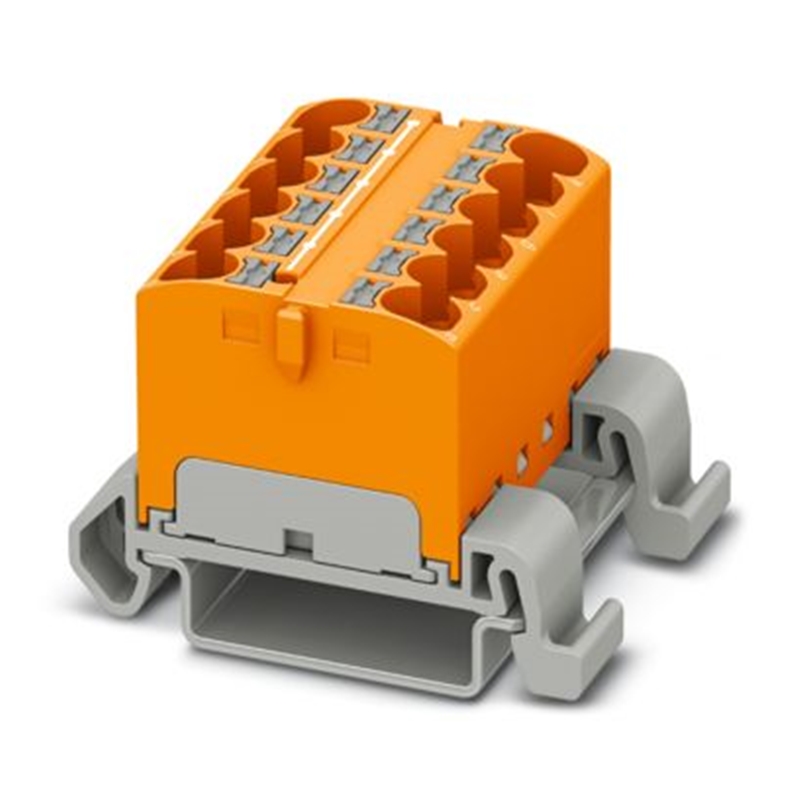 Bloc distributeur, pour montage longitudinal, 630 V,32 A, Push-in, nombre de connexions: 12, 0,2 mm² - 6 mm², AWG: 24 - 10, largeur: 18,5 mm, hauteur: 29,2 mm, couleur: orange, type de montage: NS 35/7,5, NS 35/15