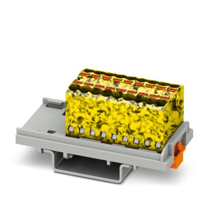 Bloc distributeur, 500 V, 17,5 A, Push-in, nombre de connexions: 18, section : 0,14 mm² - 2,5 mm², AWG: 26 - 14, largeur: 21,6 mm, couleur: noir/jaune, type de montage: NS 35/15, NS 35/7,5