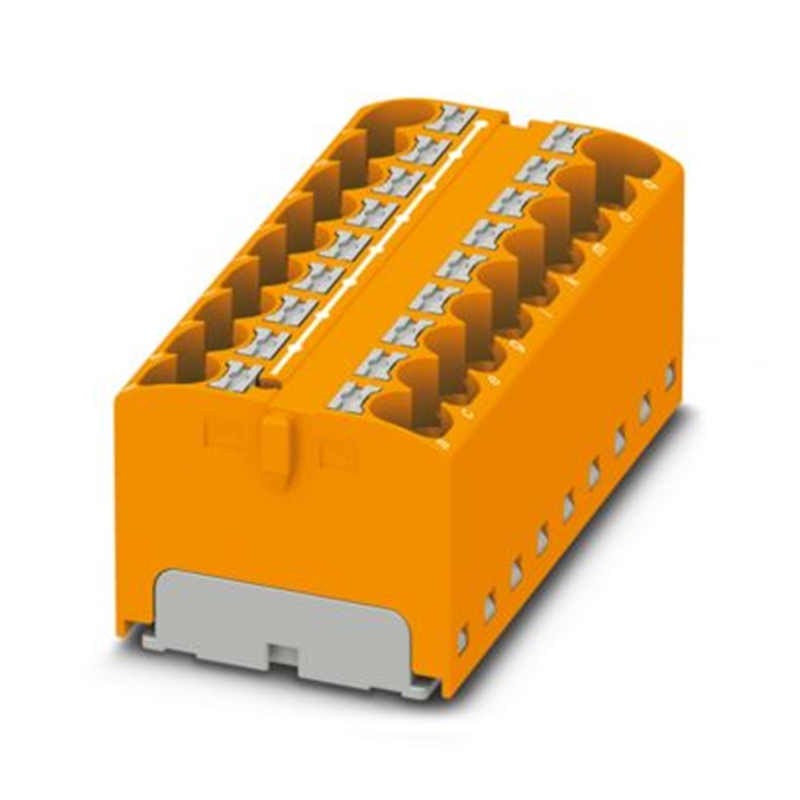 Bloc distributeur, 630 V,32 A, Push-in, nombre de connexions: 18, section :0,2 mm² - 6 mm², AWG: 24 - 10, largeur: 55,4 mm, hauteur: 21,7 mm, coloris: orange, type de montage: adhésif