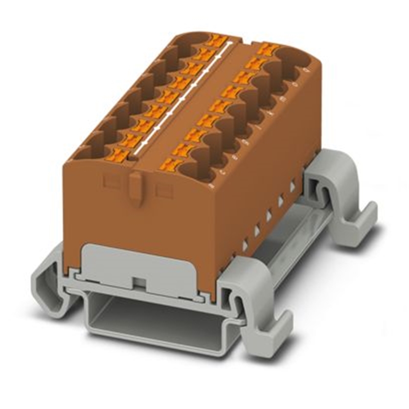 Bloc distributeur, pour montage longitudinal, 630 V,32 A, Push-in, nombre de connexions: 18, 0,2 mm² - 6 mm², AWG: 24 - 10, largeur: 18,5 mm, hauteur: 29,2 mm, couleur: marron, type de montage: NS 35/7,5, NS 35/15