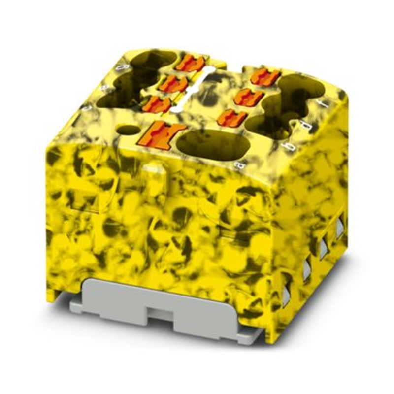 Bloc distributeur, 450 V, 17,5 A, Push-in, nombre de connexions: 7, section : 0,14 mm² - 2,5 mm², AWG: 26 - 14, largeur: 19 mm, hauteur: 17,7 mm, couleur: noir/jaune,