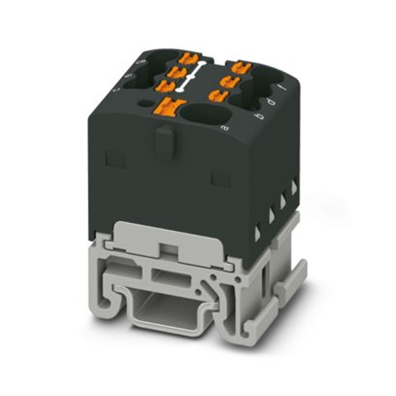 Bloc distributeur, 500 V, 17,5 A, Push-in, nombre de connexions: 7, section : 0,14 mm² - 2,5 mm², AWG: 26 - 14, largeur: 19 mm, couleur: noir, type de montage: NS 15