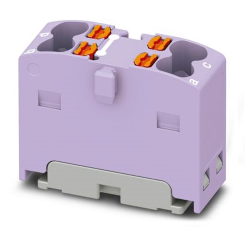 Bloc distributeur, 450 V, 17,5 A, Push-in, nb. de connexions: 4, section : 0,14 mm² - 2,5 mm², AWG: 26 - 14, largeur: 8,3 mm, hauteur: 17,7 mm, couleur: violet, type de montage: encliquetage sur l'adaptateur de profilé