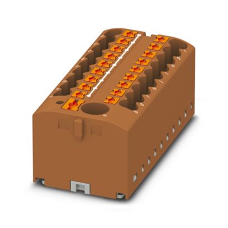Bloc distributeur, Module de base avec alimentation, Push-in, nombre de connexions : 19, sections : 0,14 mm² - 4 mm², largeur : 56 mm, hauteur : 21,2 mm, coloris : marron, type de montage : adhésif
