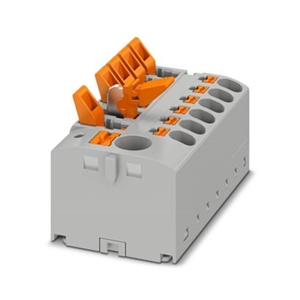 Bloc répartiteur fonctionnel, Bloc de jonction de base avec alimentation et couteau de sectionnement dans les branches, déconnexion à l'aide d'un tournevis ou manuellement, tension nominale: 400 V, intensité nominale: 20 A, Dérivation, type de raccordement: Raccordement Push-in, Section de référence: 2,5 mm², section : 0,14 mm² - 4 mm², Raccordement collectif, type de raccordement: Raccordement Push-in, Section de référence: 6 mm², section : 0,5 mm² - 10 mm², montage: encliquetage sur l'adaptateur de profilé, Montage direct avec bride, Volant, coloris: gris
