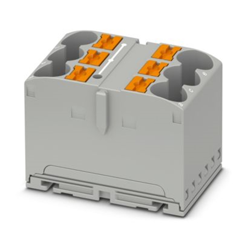 Bloc distributeur, Push-in, nb. de connexions : 6, sections : 0,5 mm² - 16 mm², largeur : 36 mm, couleur : gris, type de montage : volant ou à fixer sur un adaptateur NS 35
