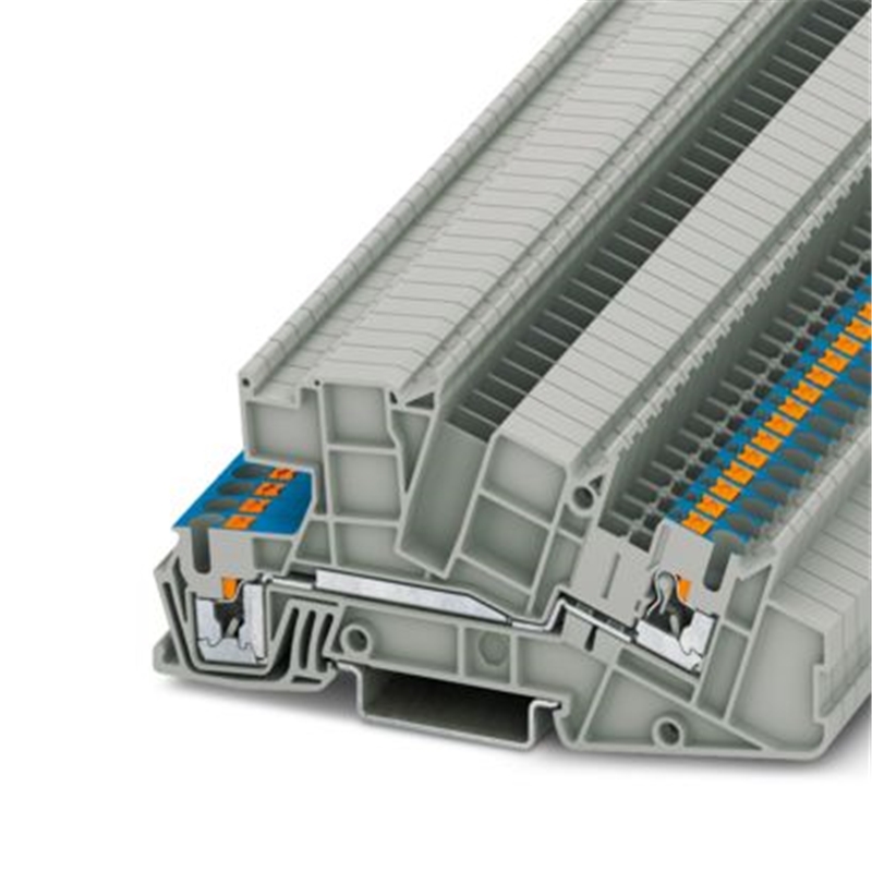 Bloc de jonction à étages pour installations, Push-in, sections : 0,14 mm² - 4 mm², largeur : 5,2 mm, coloris : gris, type de montage : NS 35/7,5, NS 35/15