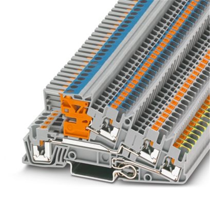 Bloc de jonction à étages pour installations, Push-in, sections : 0,14 mm² - 4 mm², largeur : 5,2 mm, couleur : gris, type de montage : NS 35/7,5, NS 35/15