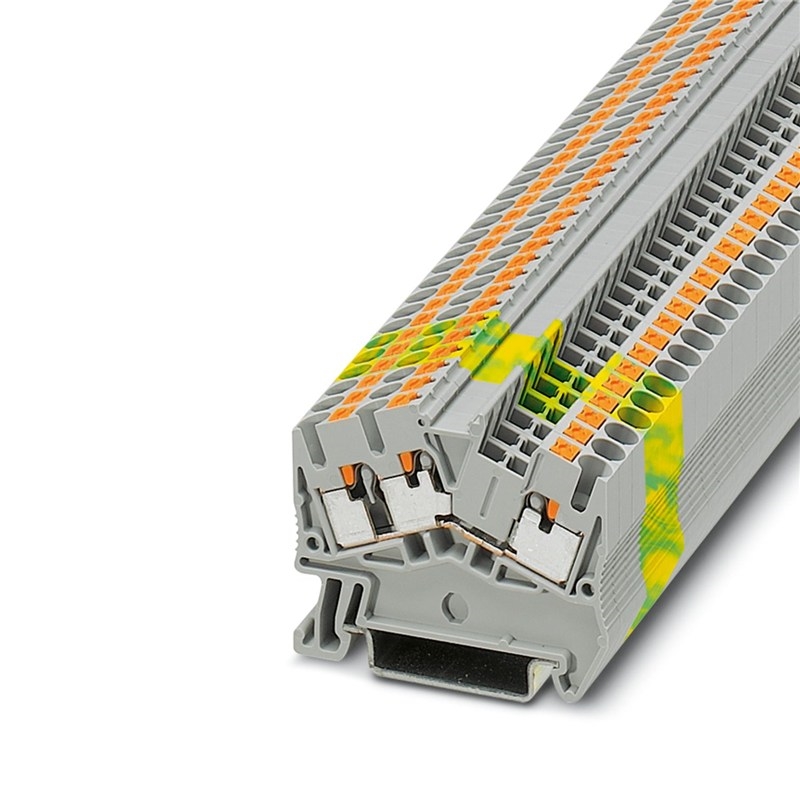 Bloc de jonction pour conducteur de protection, nombre de connexions: 3, type de raccordement: Raccordement Push-in, 1er étage, section : 0,14 mm² - 4 mm², type de montage: NS 35/7,5, NS 35/15, coloris: vert/jaune