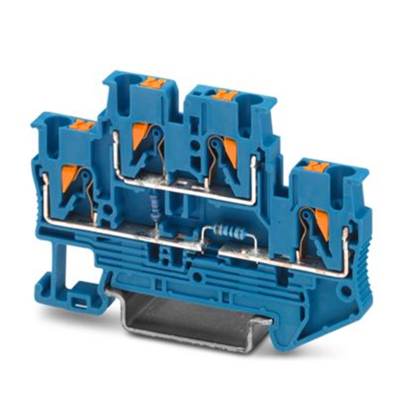 Bloc de jonction à 2 étages, Push-in, sections : 0,14 mm² - 4 mm², largeur : 5,2 mm, couleur : bleu, type de montage : NS 35/7,5, NS 35/15